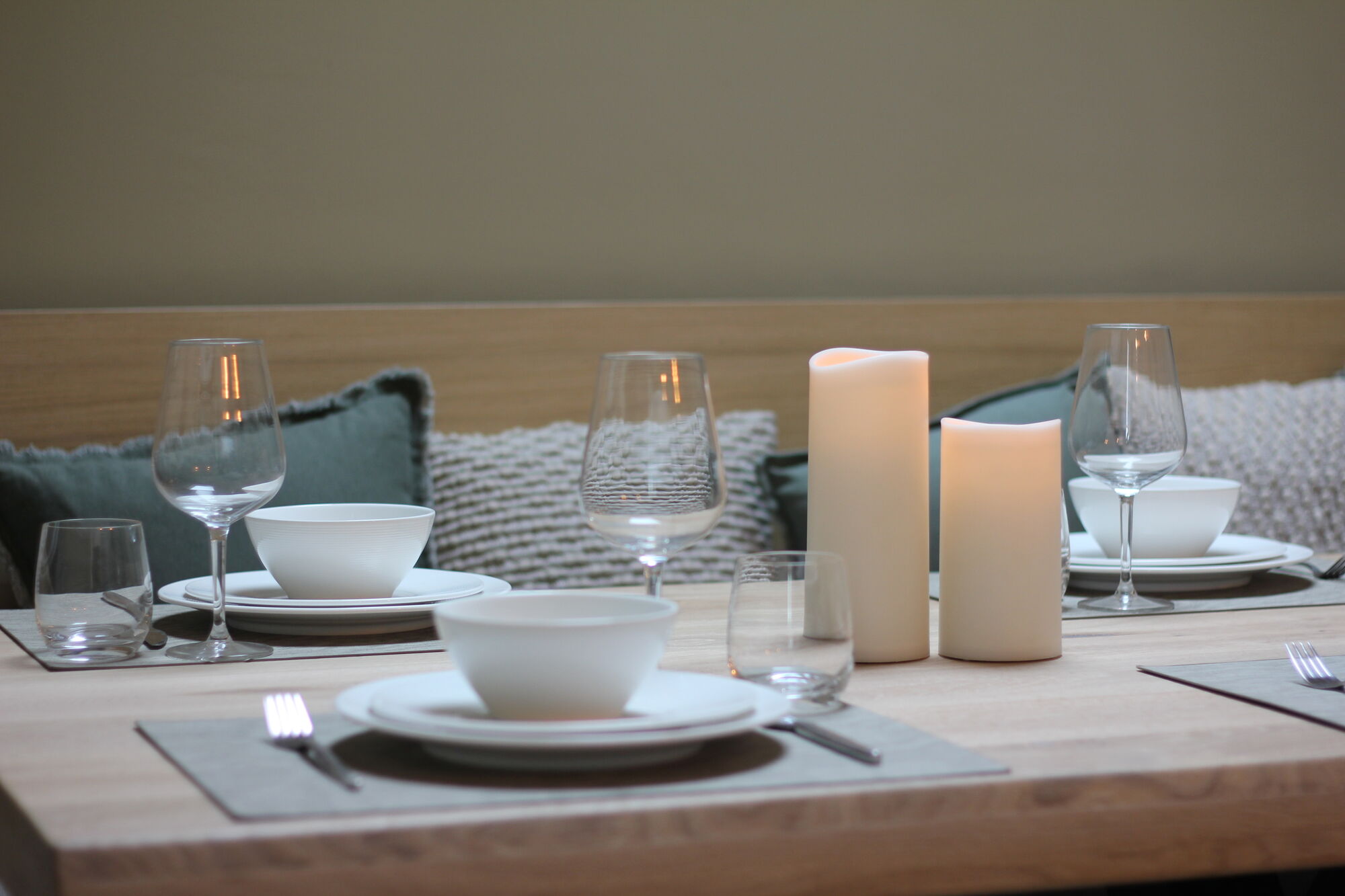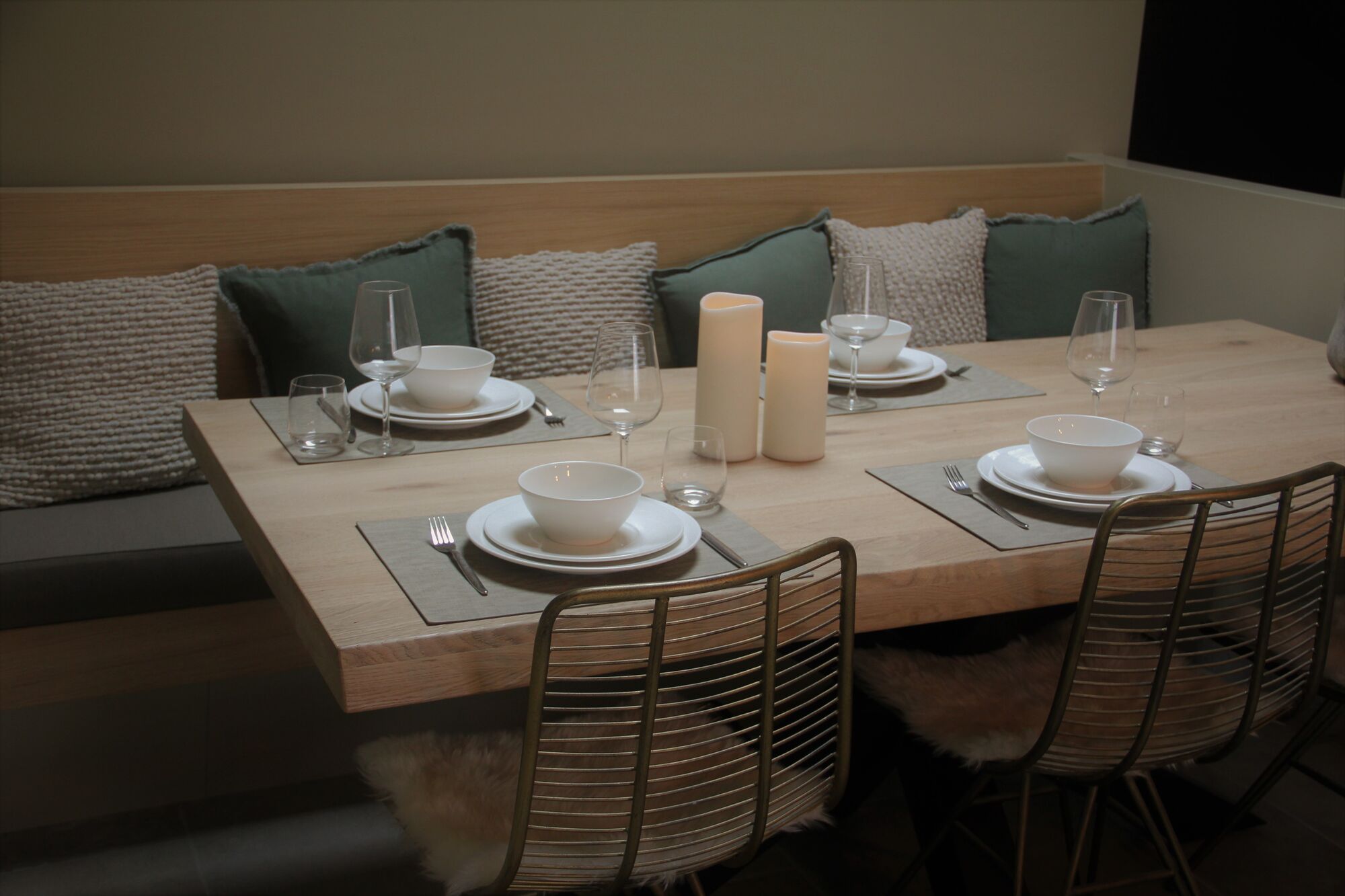 Op het gelijkvloers is er een ruime keuken met een microgolfoven en oven, inductiekookplaat met dampkap, koelkast, vaatwasmachine, Nespresso koffieapparaat, waterkoker, broodrooster, en alle nodige eet- en kookgerief.